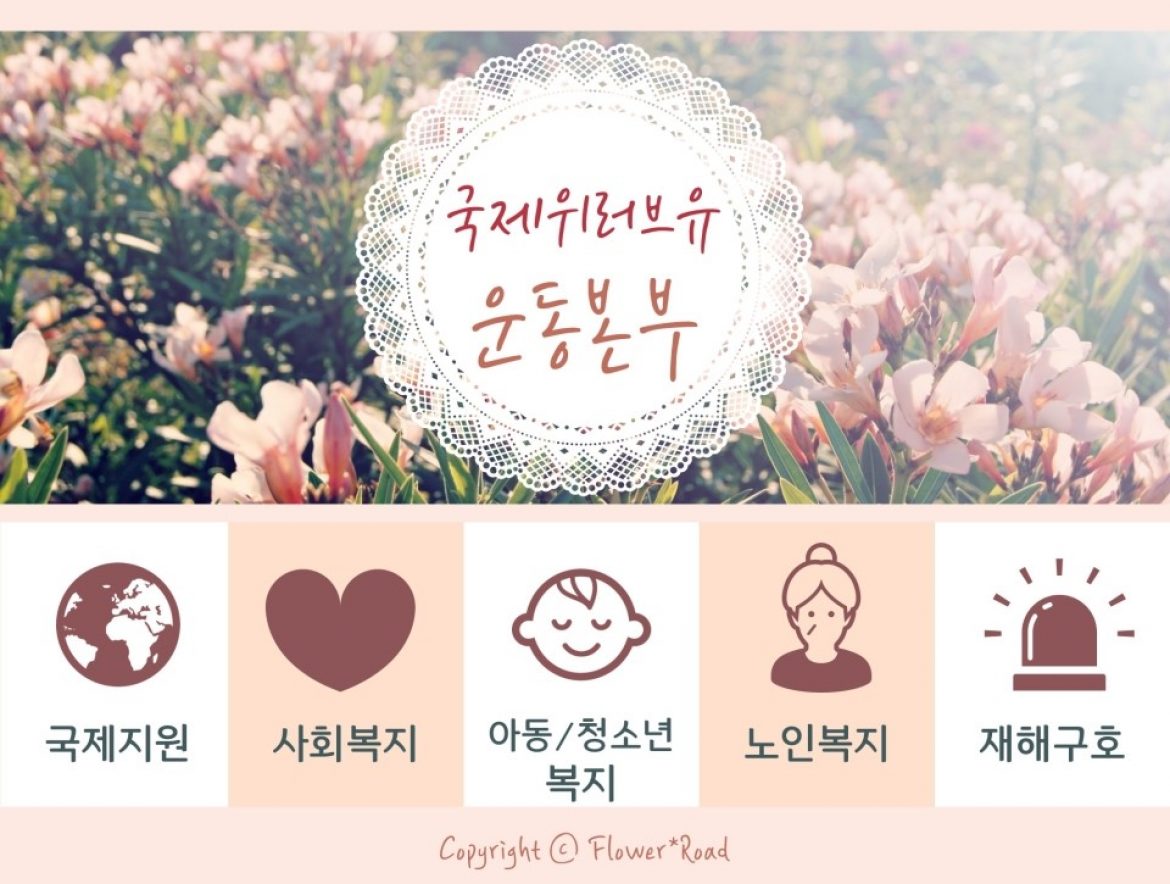 국제위러브유운동본부는 국가와 민족, 언어, 문화를 초월해 재난, 질병, 빈곤 등 위기에 처한 지구촌 가족들이 차별 없이 존중받고 평화롭게 살아가도록 글로벌 복지활동을 전개합니다.